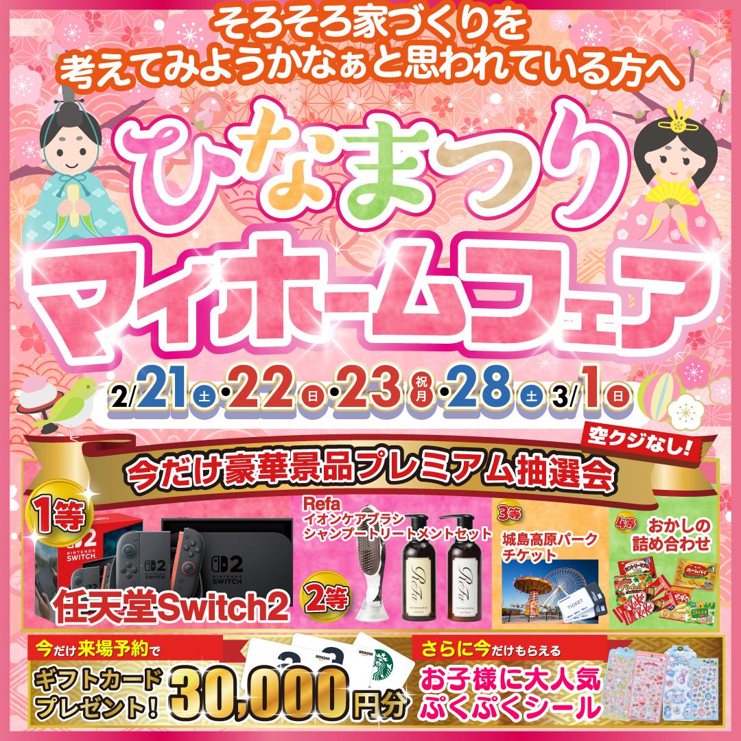 2026/2/21(土)・22(日)・23(月祝)・28(土)・3/1(日) 10:00〜17:00 ★平日見学もできます!※水曜定休 |