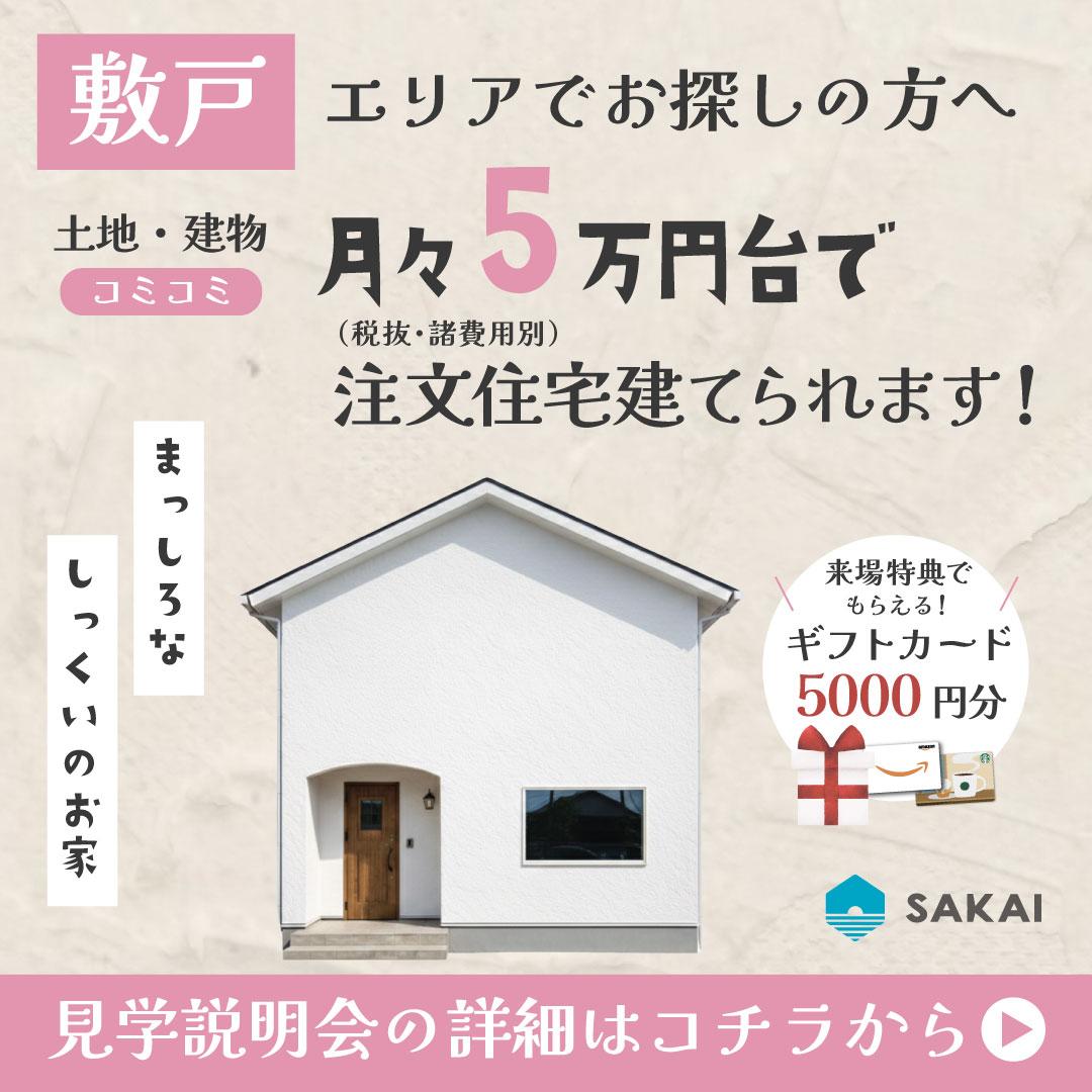 ①事前予約の上で初めてSAKAIに来場頂くお客様1組様につき、ギフトカード5,000円分を1回限りで進呈させていただきます。